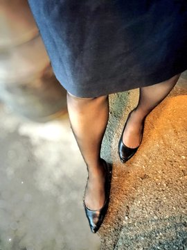 スカートのすそから覗く、ベージュのストッキング。 誰も見てないって思いながらも、どこか落ち着かない。